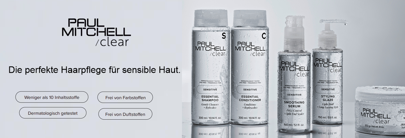 Paul Mitchell Clear Sensitive – sanfte Haarpflege für sensible Kopfhaut & empfindliches Haar. Frei von Duft- & Farbstoffen, vegan und dermatologisch getestet.